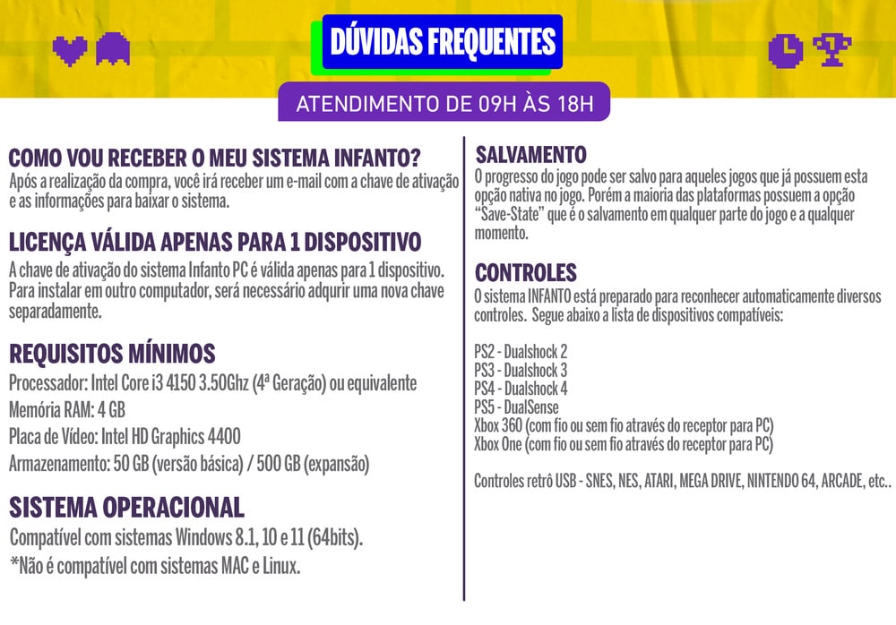 Descubra por que milhares de jogadores escolhem nosso Sistema de Jogos "Infanto PC". Baixe agora e comece a criar novas lembranças enquanto revive as antigas. Não perca a chance de fazer parte dessa jornada única, onde você pode adicionar novos jogos, jogar com amigos remotamente, salvar seu progresso, e agora, com o Pacote de Expansão, explorar ainda mais a vasta coleção de 44 mil jogos em 64 plataformas diferentes!